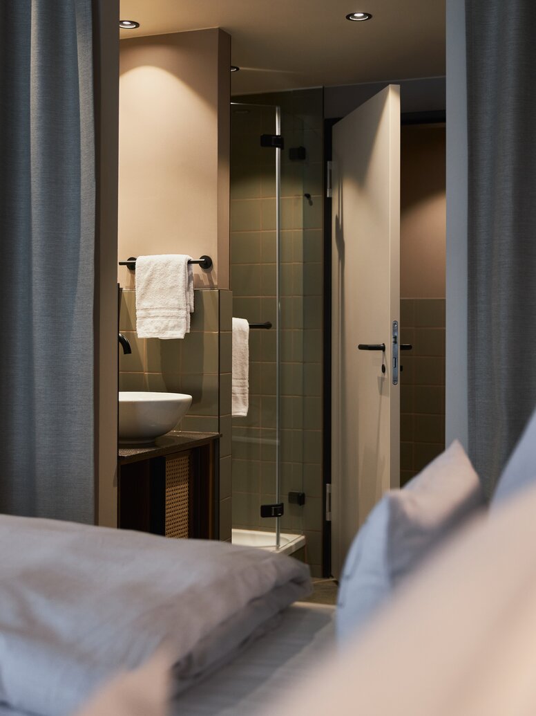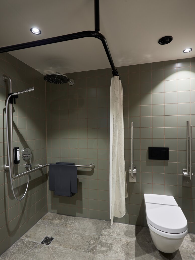 Neben den Türdrückern kommen im Cocoon Salzburg auch HEWI Systeme in den barrierefreien Bädern zum Einsatz. HEWI gilt seit Jahrzehnten als Spezialist für barrierefreie Lösungen und entwickelt neue Produkte stets nach den Ansprüchen des Universal Designs. In den Bädern des Cocoon verhelfen Lösungen wie der Stützklappgriff und der besonders leichte Einhänge-Duschsitz aus dem System 900 körperlich eingeschränkten Hotelgästen zu einer vereinfachten Nutzung. Alle HEWI Systeme für barrierefreie Bäder eint, dass sie mit ihrer Funktionalität, hoher Qualität und einer hygienischen, pflegeleichten Gestaltung überzeugen.