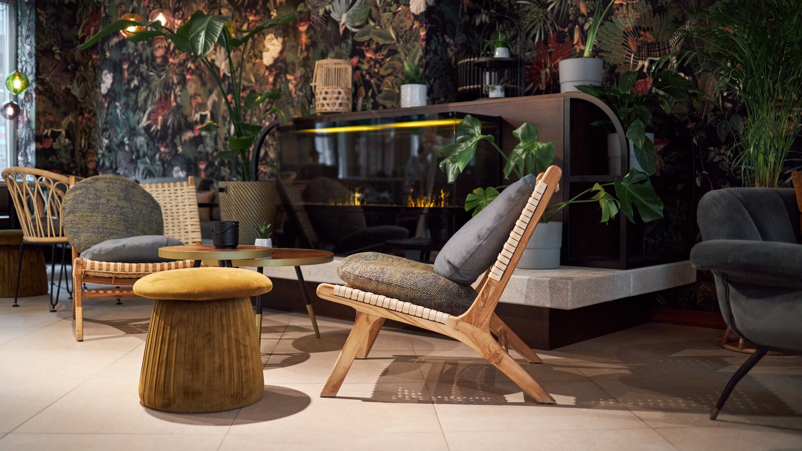 In gebauten Raum umgesetzt hat die Geschichte von der Metamorphose der Raupe zum Schmetterling das Augsburger Kreativstudio Dreimeta. Das Credo des interdisziplinären Gestaltungsbüros lautet: Emotionalisierung des Raumes – Innenarchitektur, die Geschichten erzählt und die Sinne berührt. Die Lobby entwarfen Dreimeta als lebendigen, einladenden urbanen Ort, der mit großformatigen floralen Motiven und kräftigen Farben die Gäste empfängt. Als Rückzugsort hingegen wurden die Hotelzimmer mit gedeckteren, erdigen Farbtönen gestaltet, die mit Korbmöbel- und leuchten einen wohnlichen Charme verströmen.