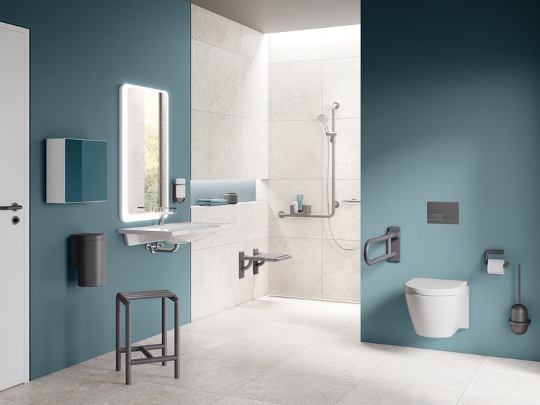 Das umfassende Sortiment vom Türdrücker über Sanitäraccessoires bis hin zu Komfortprodukten und barrierefreien Elementen ermöglicht eine konsequente Ausstattung, exakt ausgerichtet auf die individuellen Bedürfnisse der Nutzer. Das clevere Funktionsprodukt verleiht dem sanitären Raum in Krankenhäusern, Senioren- oder Pflegeheimen sowie zu Hause eine wohnliche Gestaltungsalternative.
