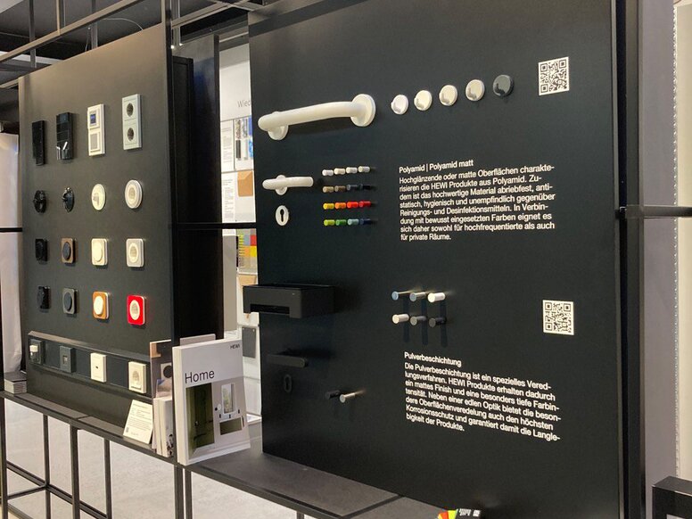 Auch Produkte von HEWI können Sie nun in der digitalen Materialdatenbank sowie der physischen Ausstellung von raumprobe erkunden.