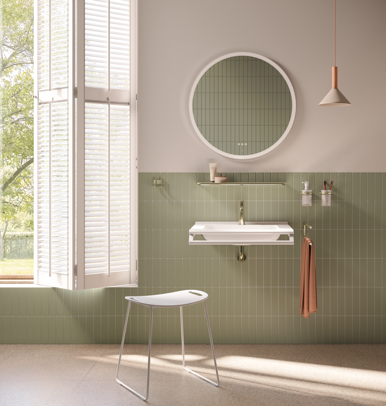 Available in stainless steel satin finished, chrome and powder-coated and with PVD surfaces in various colors, the accessories offer a wide range of design options in hotels, elective service areas, public buildings and private bathrooms.