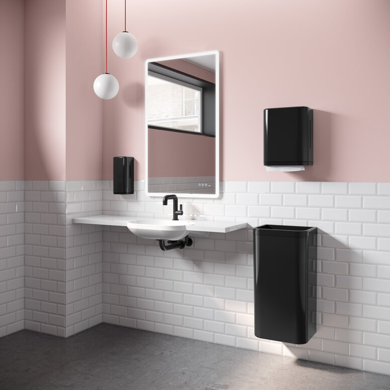 The glossy dispenser products in the 477/801 range are now available in black and white with pink frame elements. Both colour variants add expressive design options to the successful sanitary series – from classically elegant to modern and accentuated.