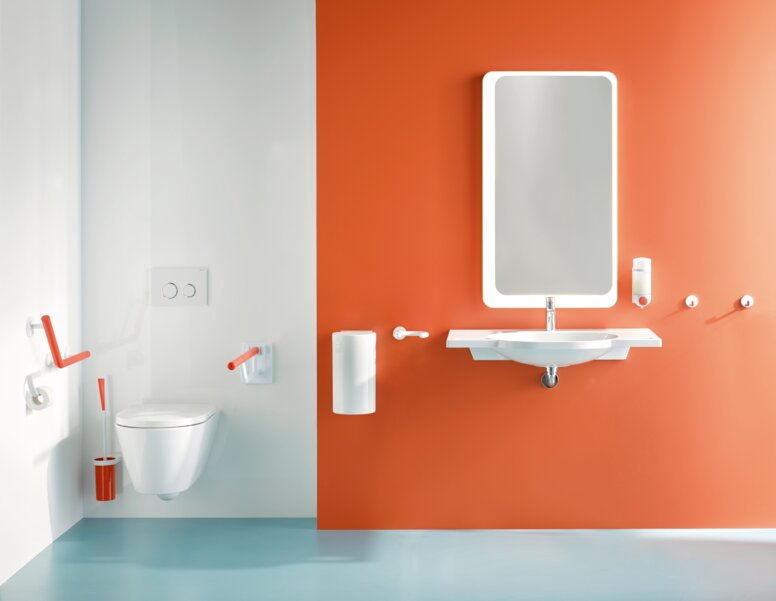 The sanitary room plays a special role in the planning of health centres and medical practices. The design of the bathroom is challenging as it has to be designed in a way that all patients can use it. These include wheelchair users, rollator users, blind or visually impaired people and people with cognitive impairments.