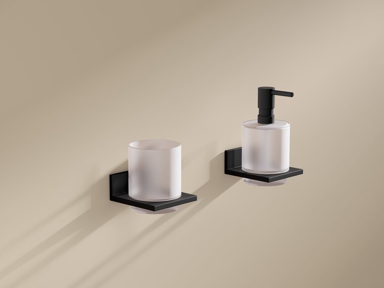 Bathroom design ideas that rely on contrasting effects add exciting accents that perfectly complement the minimalist style. Dark elements, such as black matt products, create elegant highlights and blend in well with the plain design. Towel rails, soap dispensers or other accessories in this style go perfectly with light-coloured tiles and give small bathrooms a modern, timeless touch. The striking, square design language of the HEWI design version S 900 Q emphasises this look and blends seamlessly into the minimalist overall concept. Even small spaces can therefore be transformed into impressive modern bathrooms.