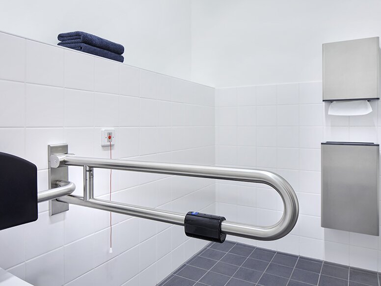 The architects chose Range 805 from HEWI for the barrier-free sanitary rooms. The reduced design of Range 805 enables a clear room setting. Right down to the smallest detail, this Range shows that good design and intelligent functions form a single unit. For example, the functional area of the dispenser systems made of high-quality polyamide is colour-contrasting.