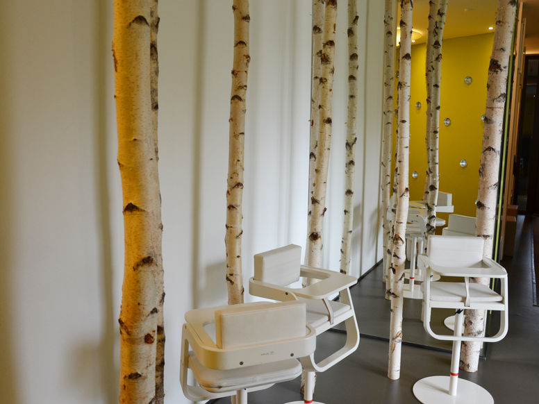 Een groot deel van het meubilair werd speciaal gemaakt van licht hout volgens de plannen van het architectenbureau HM Zeilberger. Warme groene tinten zijn te vinden op de muren en in het interieurontwerp