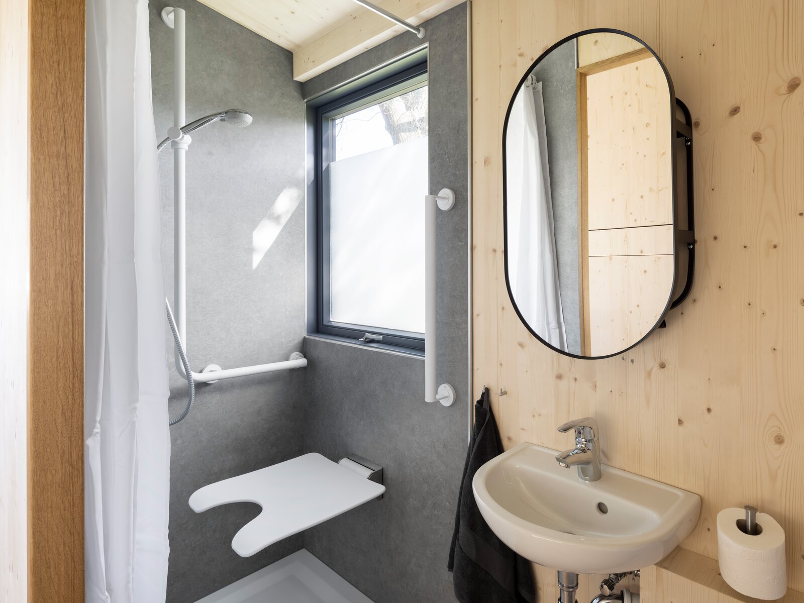 Christian Bock: We hebben de markt verkend en bekeken welke mogelijkheden we hadden om de badkamer in te richten. De producten moesten passen bij uitstraling van de rest van het huisje.. Als ambachtelijke timmerwerkplaats uit Noord-Hessen zijn wij natuurlijk bekend met HEWI. We waren op zoek naar iets eenvoudigs en moderns. Dat vonden we in HEWI's Systeem 900. Uiteindelijk viel onze keuze op de kleur mat wit, die perfect past bij de rest van het interieur van het tiny house. Het belangrijkste bij de keuze was, dat Jens Conrad blij zou zijn met de producten. En dat is zeker het geval.