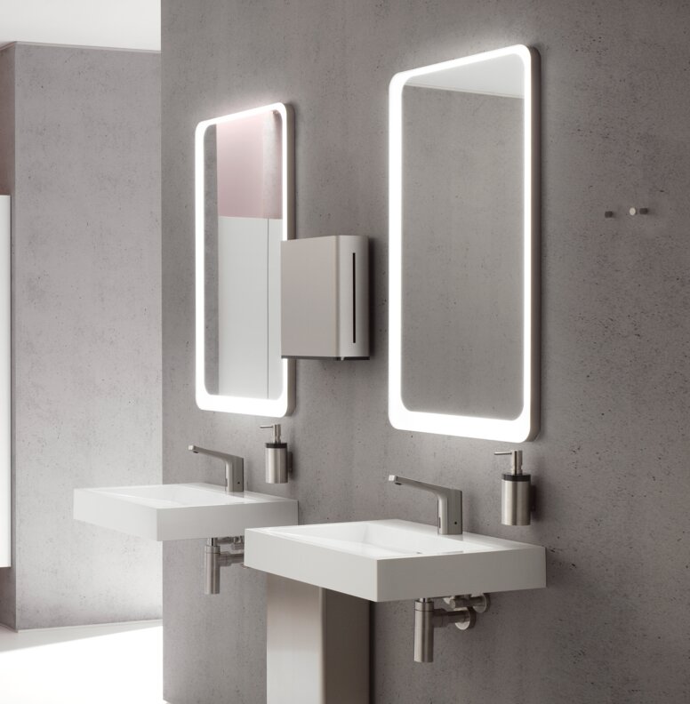 Verblindingsvrije LED-spiegels verlichten het gezicht van uw klanten en bepaalde delen van de duurzame badkamer optimaal. De hoogwaardige LED-spiegel verlicht het spiegelbeeld gelijkmatig. De leds bevinden zich achter een gesatineerde spiegelrand die de kleuren onveranderd weergeeft. Het licht van de spiegel is warm wit en creëert een aangename sfeer in de badkamer.