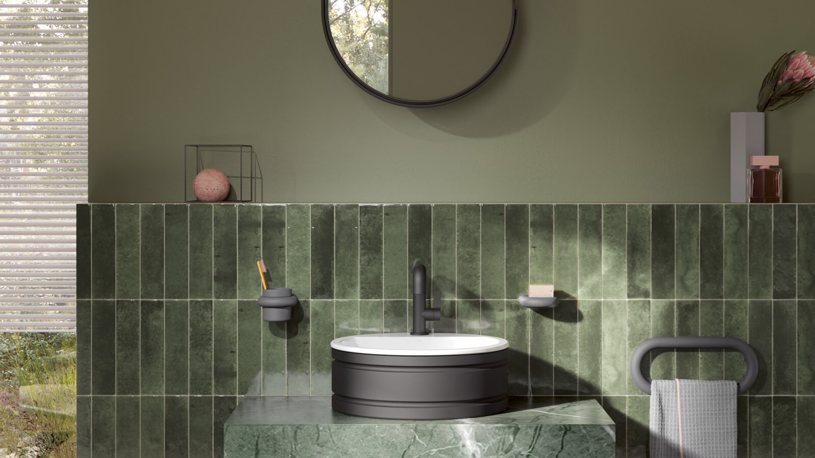 Zu den selbstbewussteren Badezimmer Trends 2026 gehört der Mut zur Farbe. Sie wird nicht mehr nur als Kontrast eingesetzt, sondern als bewusstes gestalterisches Element. Farbe strukturiert, schafft Atmosphäre und setzt Akzente mit Haltung. Besonders im Bad verändert sie die Wahrnehmung: Ein farblich geprägter Raum wirkt nicht zwingend lauter, aber definierter.