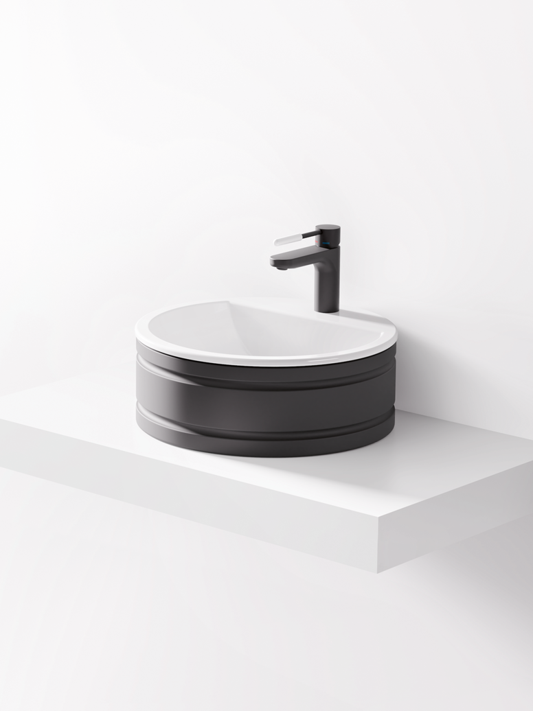 Neben klassischem Weiß sind heute auch schwarze Design Waschtische gefragt. Besonders spannend wird es, wenn innen und außen unterschiedliche Farben kombiniert werden – etwa eine weiße Innenseite mit einer dunklen Außenseite. Diese Zweifarbigkeit sorgt für Kontraste, die in modernen Design Bädern gezielt eingesetzt werden.