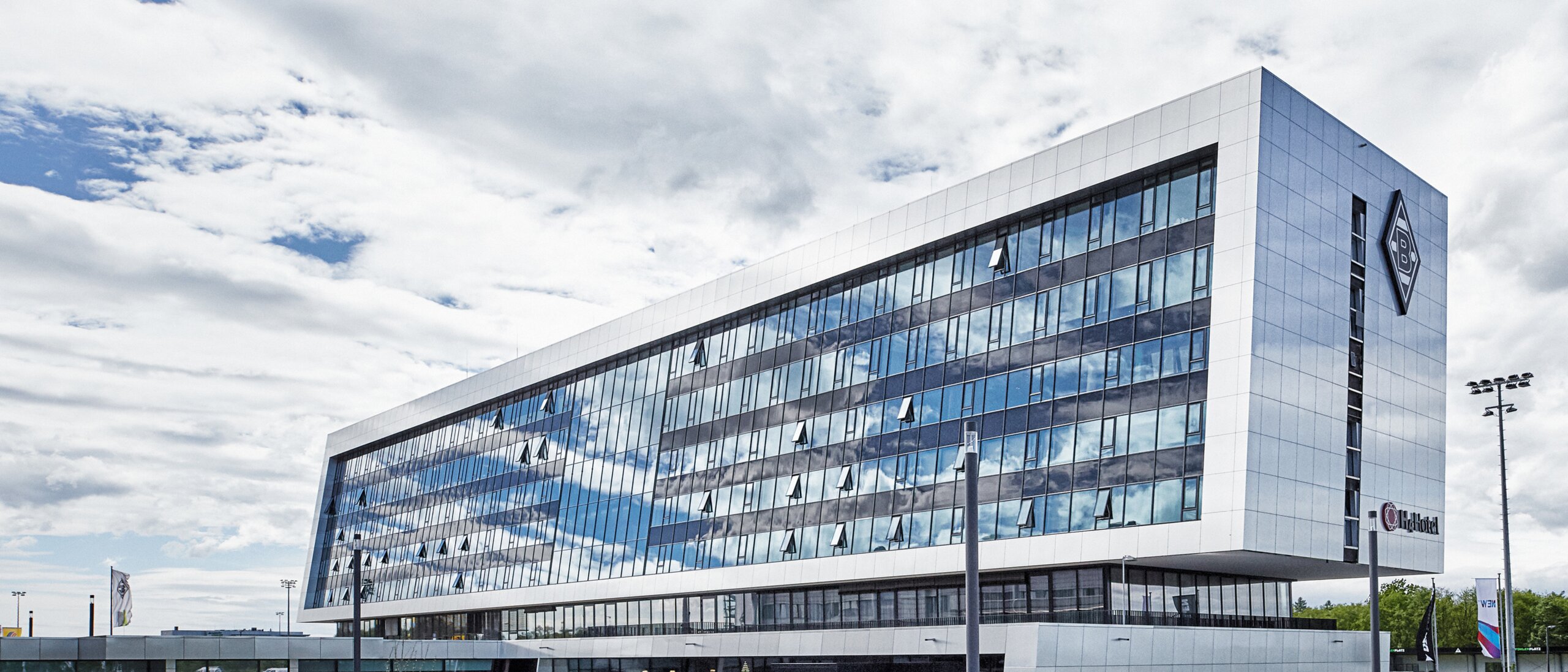 Bereits der Entwurf des Gebäudes lehnt sich eng an den Verein Borussia Mönchengladbach an. Das Vereinswappen - die Borussia-Raute - ist Entwurfsprinzip.