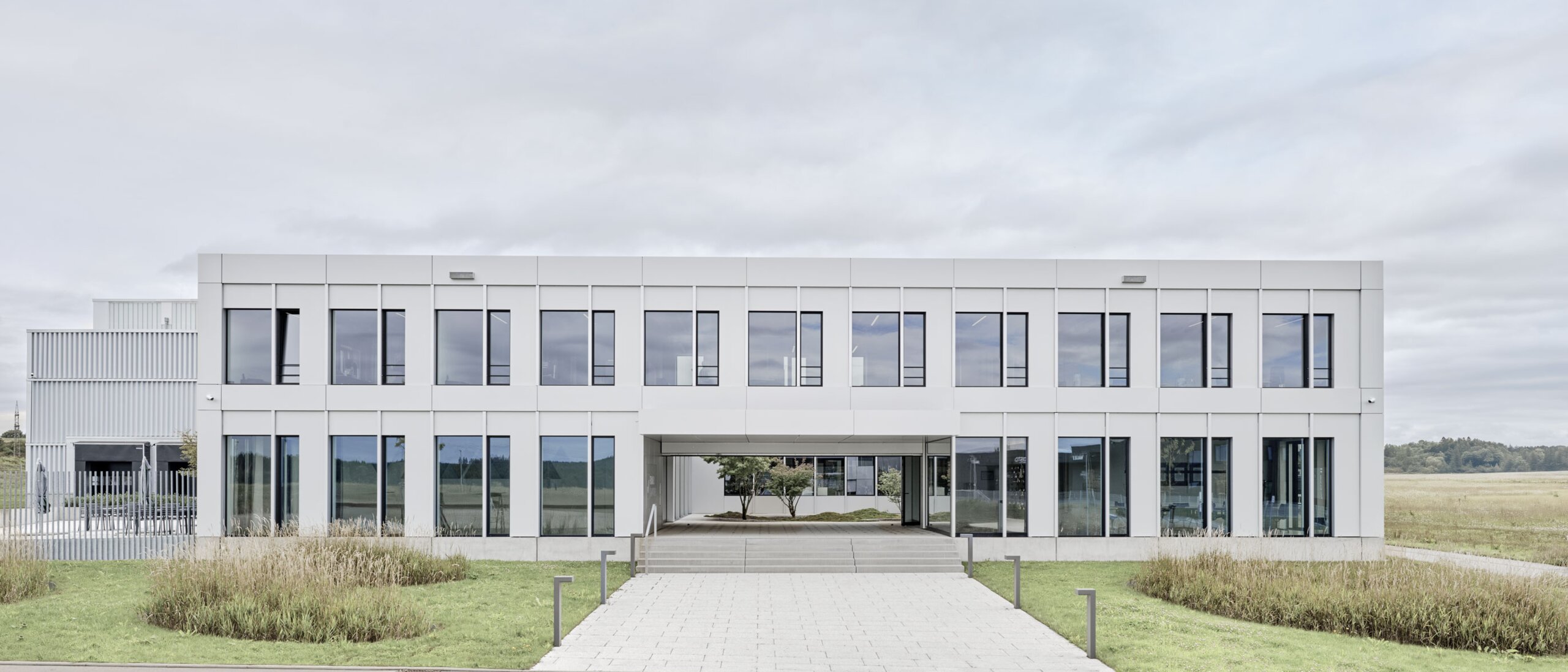 Auch in funktional geprägten Industriegebieten entstehen immer wieder Gebäude, die durch ihre architektonische Qualität hervorstechen. Am nördlichen Ortsrand der Gemeinde Dunningen fügt sich so ein gelungenes Industriegebäude ruhig und ausdrucksstark zwischen Bundesstraße und offene Landschaft ein. Das Architekturbüro RÖING GENANNT NÖLKE Architekten PartGmbB hat das Gebäude entworfen. Teil des von einer einzigartigen gestalterischen Konsequenz geprägten Konzepts ist die Komplettausstattung mit Produkten von HEWI.