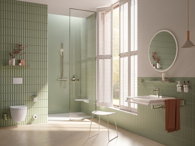 - From washbasins and accessories to fittings, hinged support rails and seats