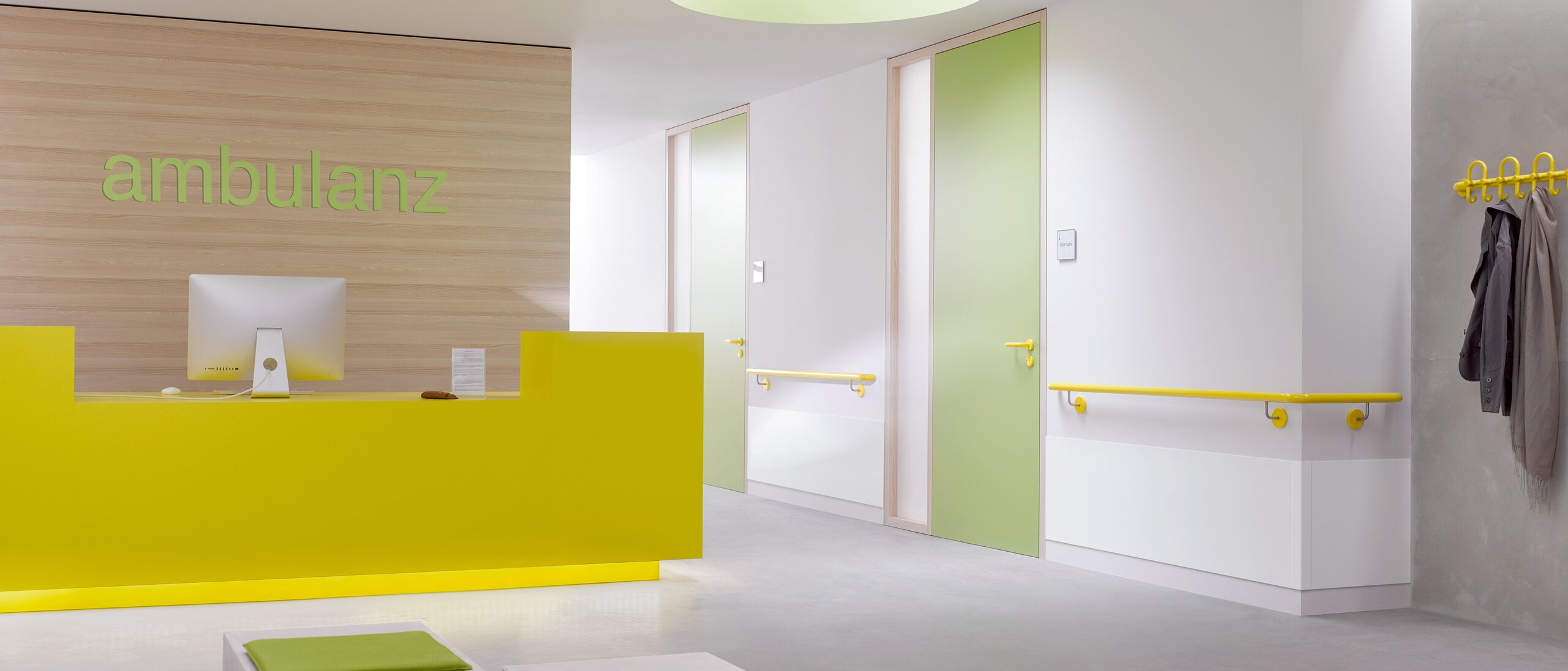 Medical practices fall under buildings open to the public. Building regulations for medical practices with regard to accessibility can be found in the DIN 18040-1 Barrier-free construction. There, it is stipulated that new buildings must be planned barrier-free. DIN 18040 thus takes particular account of the requirements of people who have a visual impairment, who have motor impairments or who are dependent on mobility aids (wheelchairs, walking aids). New medical practices and health centres have to be built barrier-free since 2009. Making an existing medical practice barrier-free often involves a lot of effort and is not that easy to implement. Whether an existing doctor's practice must be barrier-free and whether this is a requirement is basically determined by the state building code. The National Association of Statutory Health Insurance Physicians has developed both patients as well as for medical practices helpful information on this topic for both patients and medical practices. There you will also find useful tips for you as a planner or architect.