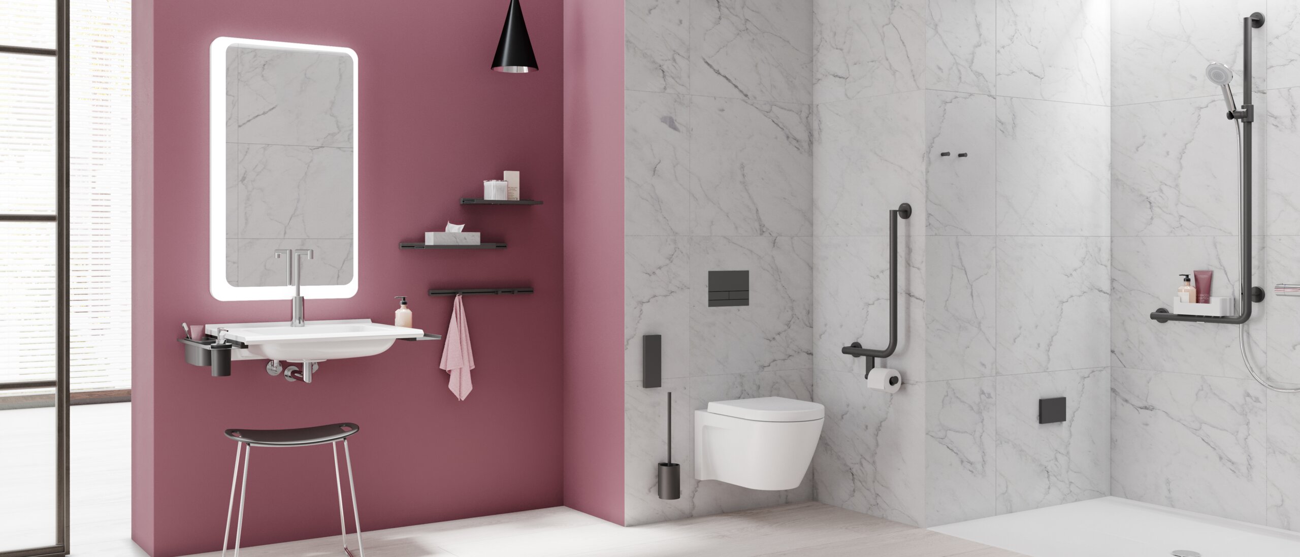 HEWI offers a unique depth of range for equipping accessible bathrooms. From clever hinged support rails to modern-looking shower seats and innovative solutions, nothing is left to be desired when it comes to designing your project.