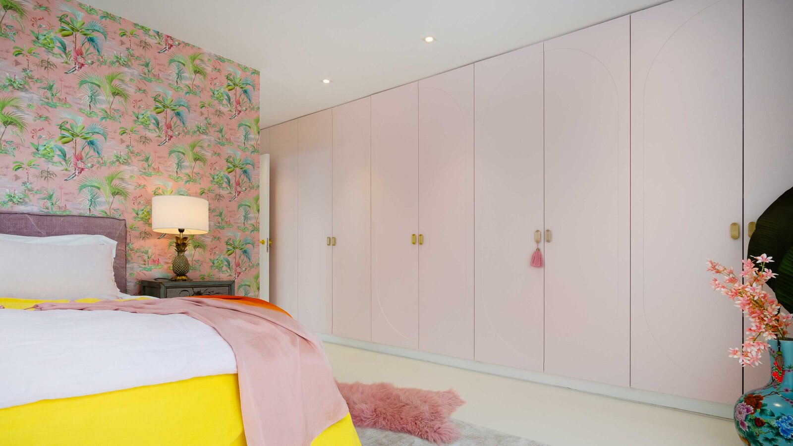 Leja’s designs focus on light, openness and, of course, colour – as the high-quality interior design of the house shows. Bright yellow, rich pink, red, and orange, and various shades of green – inspired by the surrounding Mallorcan nature – shape the character and stand for an carefree attitude towards life. A special feature is the combination of complementary colours such as purple on a yellow carpet or pink and red. These harmonise with each other in the highest luminosity.