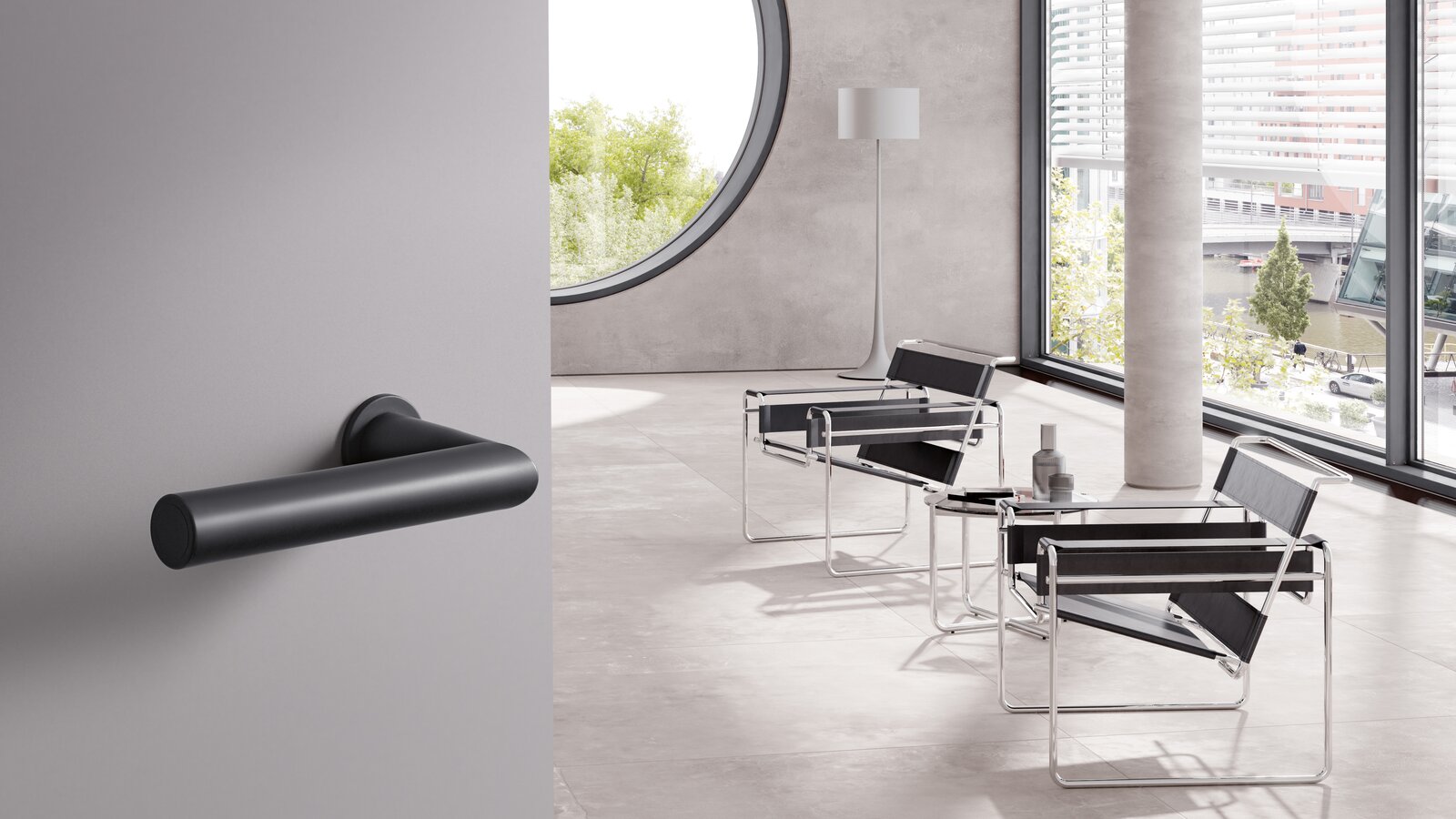 The lever handle models 250 and 162 emphasise the characteristic look of the matt edition. Personal design objects can be created in combination with mini. Matching furniture fittings, coat hangers and hooks in a matt finish enable a consistent design. Whether on the door or the furniture - the Edition matt sets extraordinary accents with a very special feel.