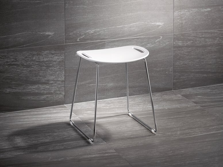 On the other hand, a shower stool formed of continuous Plexiglas is available. Due to the design, the stool has high stability - even in the wet shower. The seat height is 45 cm. The shower stool is available in matte white.