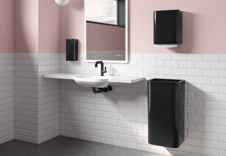 The new, shiny dispenser products in the colour black complement the successful 477/801 sanitary range. From soap and paper towel dispensers to hygiene combinations and wastebins in various sizes, HEWI offers a continuous, functional range that is also characterised by the highest design standards. In addition to manually operated versions, some of the dispensers are also available in a sensoric version.