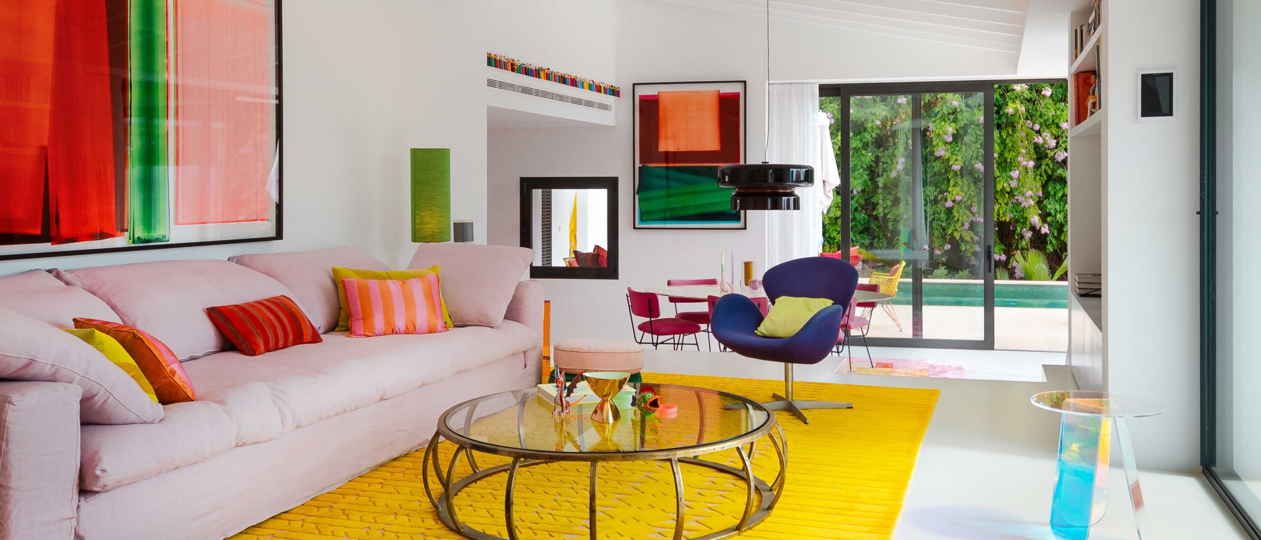 La maison de vacances a été conçue par la designer de haut niveau Christine Leja en collaboration avec le bconnected Interior Design Studio, également basé à Majorque. La décoratrice d'intérieur avoue trouver son inspiration dans le style Bauhaus, qui est également un élément marquant de la maison d'hôtes espagnole et de la poignée de porte HEWI 111. Ses projets sont principalement basés sur la lumière, l'ouverture et bien sûr la couleur, comme le montre la maison d'hôtes bigarrée à Majorque.