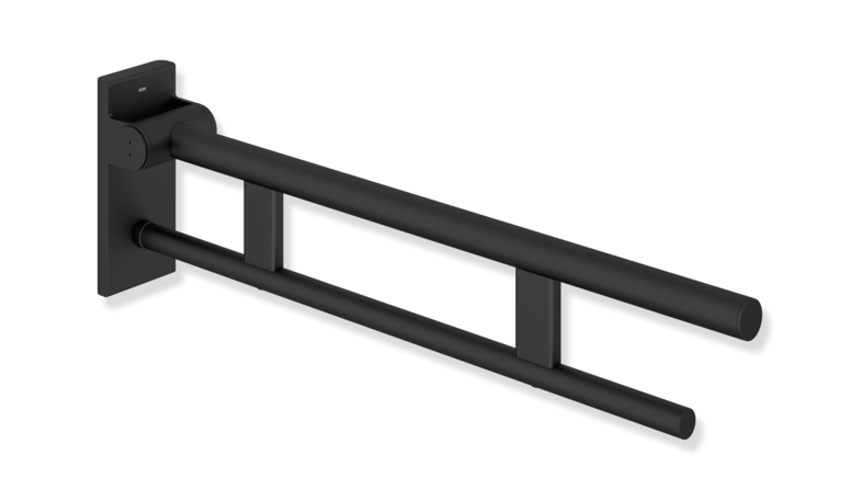 La barre d’appui relevable WARM TOUCH offre un grand confort aux toilettes ou au niveau du lavabo et allie le toucher agréable du polyamide à l’aspect brillant du chrome.