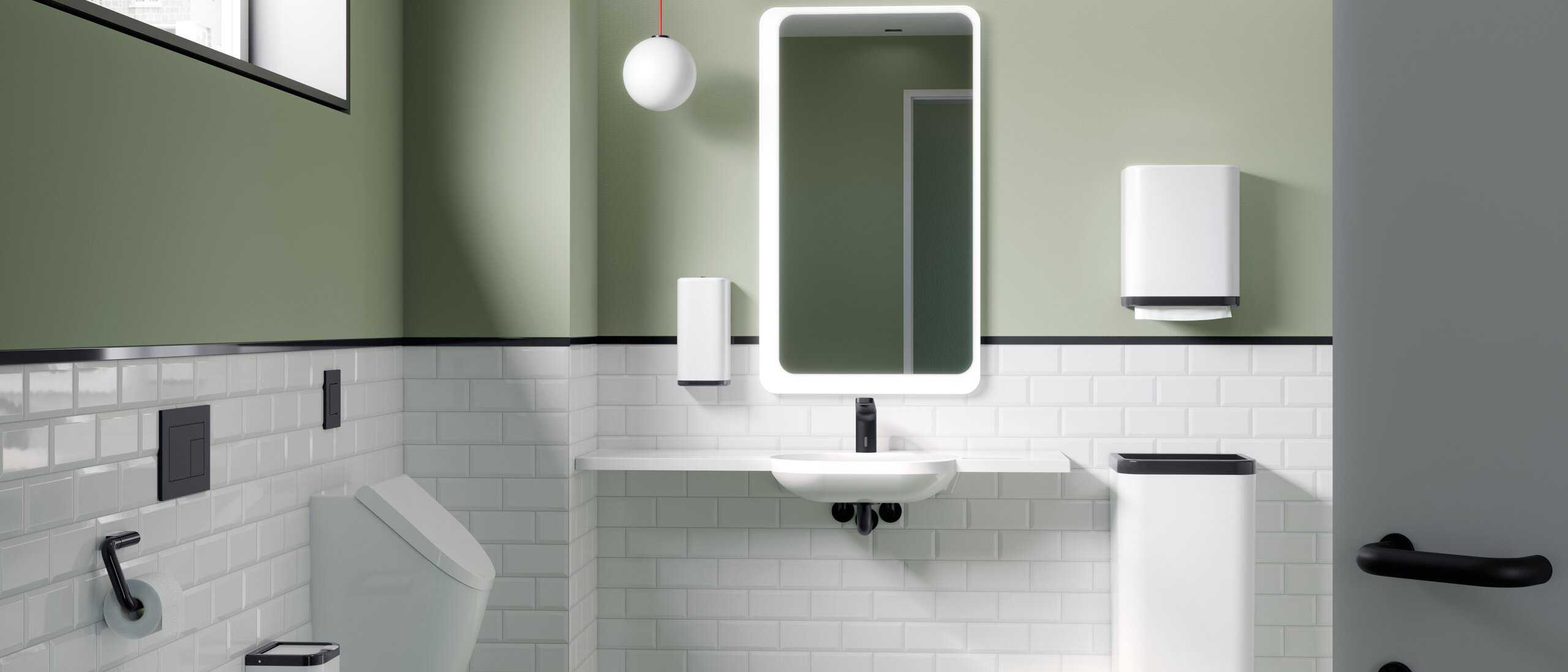 Johanna Radies : La gamme complète de distributeurs est disponible dans un design retravaillé et les produits de cet assortiment forment ainsi un ensemble homogène et cohérent avec les autres produits de la série. Grâce au choix entre les produits manuels et à capteur, les clients peuvent choisir le distributeur idéal en fonction du domaine d’application. Les produits sont conçus de manière à garantir une utilisation facile à tout moment. Les grands rayons, réduisent le risque de chocs et de blessures. L’utilisation de matériaux de haute qualité assure la durabilité et la solidité de ces produits.