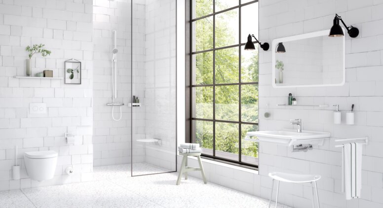 Que ce soit par des produits économes en ressources ou faciles à entretenir, des fenêtres, un éclairage à faible consommation d'énergie, des matériaux durables, une planification prévoyante ou une fabrication respectueuse de l'environnement - avec une salle de bain conçue de manière durable et bien pensée, vous contribuez à la protection du climat et favorisez l'intégration sociale des personnes âgées ou à mobilité réduite.