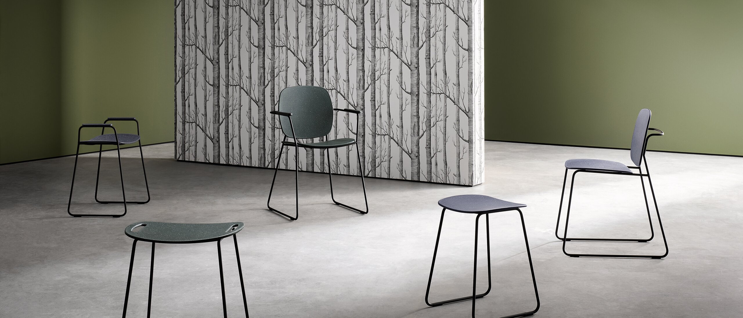 Les tabourets et les chaises de la famille de sièges durable Re de la marque HEWI, par exemple, sont fabriqués en plastiques recyclés post-industriels et incarnent ce qui se fait de mieux en matière d’écodesign. Dans les couleurs proches de la nature, vert forêt et gris granit foncé, la famille de sièges Re séduit aussi bien au toucher qu'à l'œil par son look original. La particularité : la famille de sièges Re est fabriquée par HEWI en polypropylène recyclé et en polyamide recyclé. Le second provient de notre propre production, tandis que le premier est acheté auprès d'un fournisseur régional, ce qui profite à la chaîne d'approvisionnement. Cette approche durable ne signifie pas pour autant que le design est négligé. Bien au contraire : chaque tabouret est unique, car les matériaux utilisés ont un point de fusion différent, ce qui donne une structure chinée à la surface lors du processus de moulage par injection. Pour plus d'informations sur la famille de sièges Re, consultez l'interview du chef de produit Jens Götte