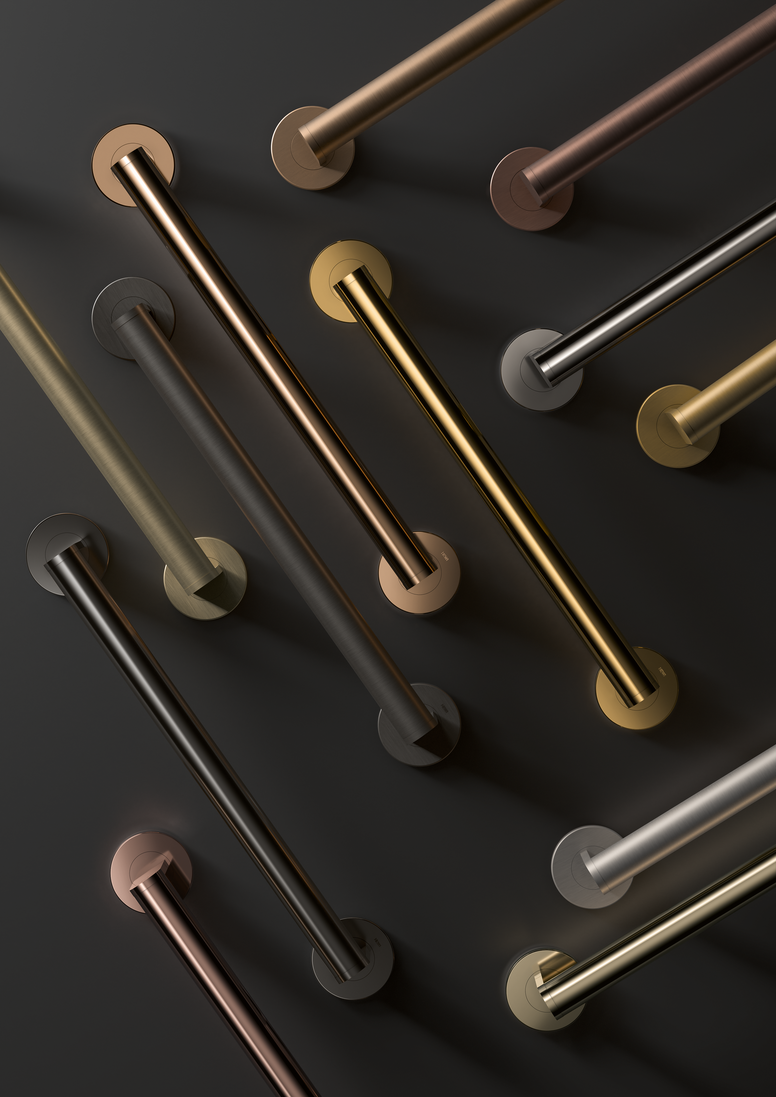 Teintes élégantes et propriétés qui les rendent résistantes à toutes épreuves: les surfaces à revêtement en PVD constituent le choix idéal pour les projets polyvalents et exigeants et les salles de bain privées. On a ici la preuve que le caractère esthétique de la conception et la grande facilité d’utilisation au quotidien vont de pair.