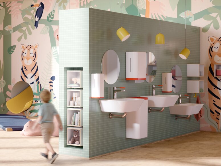 La couleur est fermement ancrée dans l'ADN de HEWI. Les produits HEWI se distinguent par des tons brillants et distinctifs, un design contemporain et intemporel ainsi que des formes réduites à l'essentiel. Le nouveau design des distributeurs de la série 477 est tout simplement parfait. Des éléments d'encadrement colorés permettent de les reconnaître et de les mettre en valeur. Dans les domaines Hotel et Public, le système 900 offre la possibilité d'une conception personnalisée.