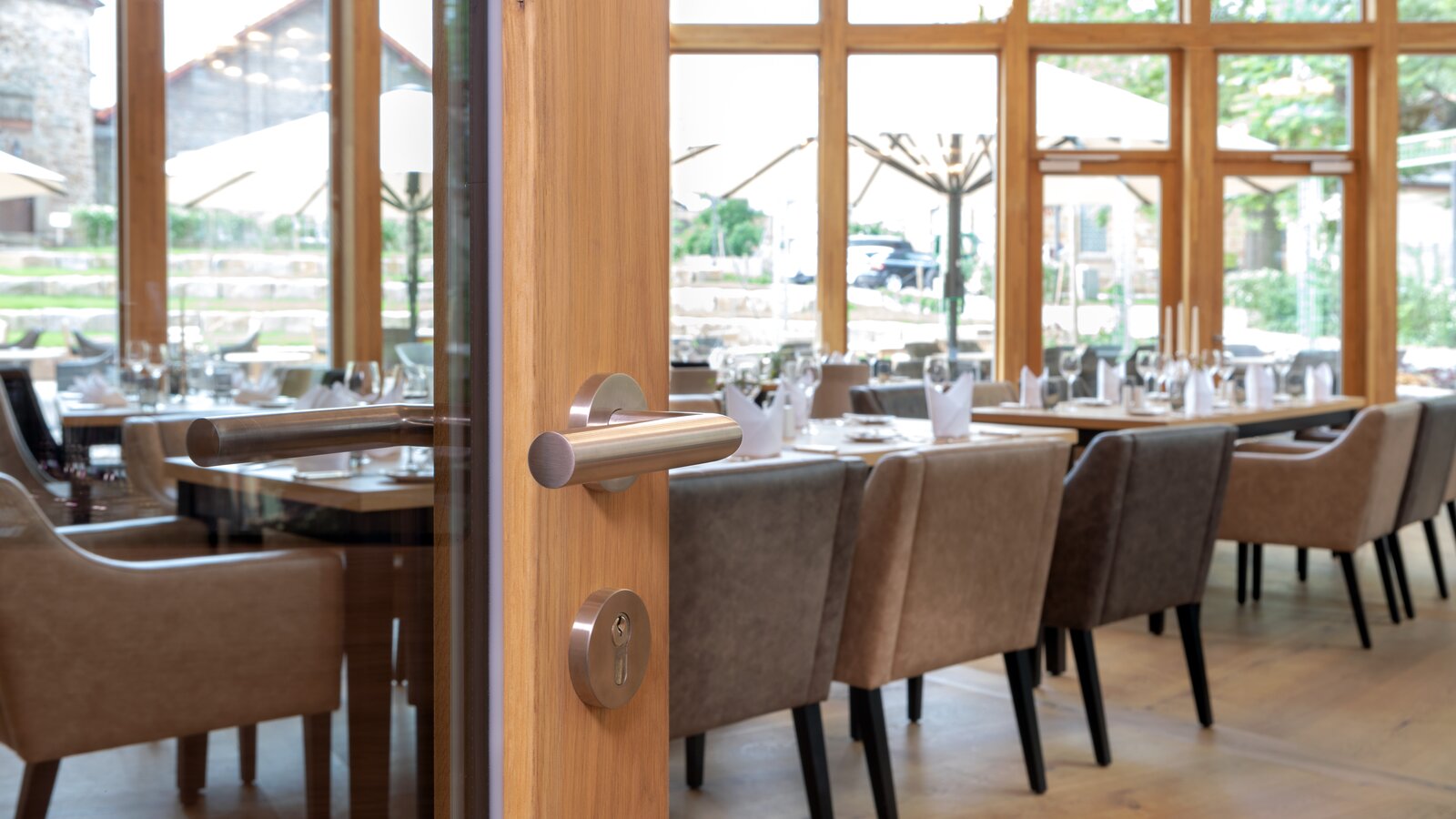De bedden in de gastenkamers, bijvoorbeeld, zijn met de hand op maat gemaakt. De slimme technologie in deze kamers biedt bijzonder comfort: licht, kamertemperatuur en entertainment kunnen gemakkelijk vanuit het bed worden bediend. Comfort betekent echter ook dat er bijvoorbeeld een douchezitje in de douche of een opklapbare steungreep naast de WC staat. Met de puristische accessoires van System 162 van HEWI wordt het sobere design tot in het kleinste detail doorgevoerd. Elke kamer is individueel ontworpen, zodat de inrichting perfect is afgestemd op de persoonlijke behoeften van de gast