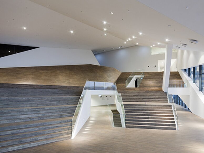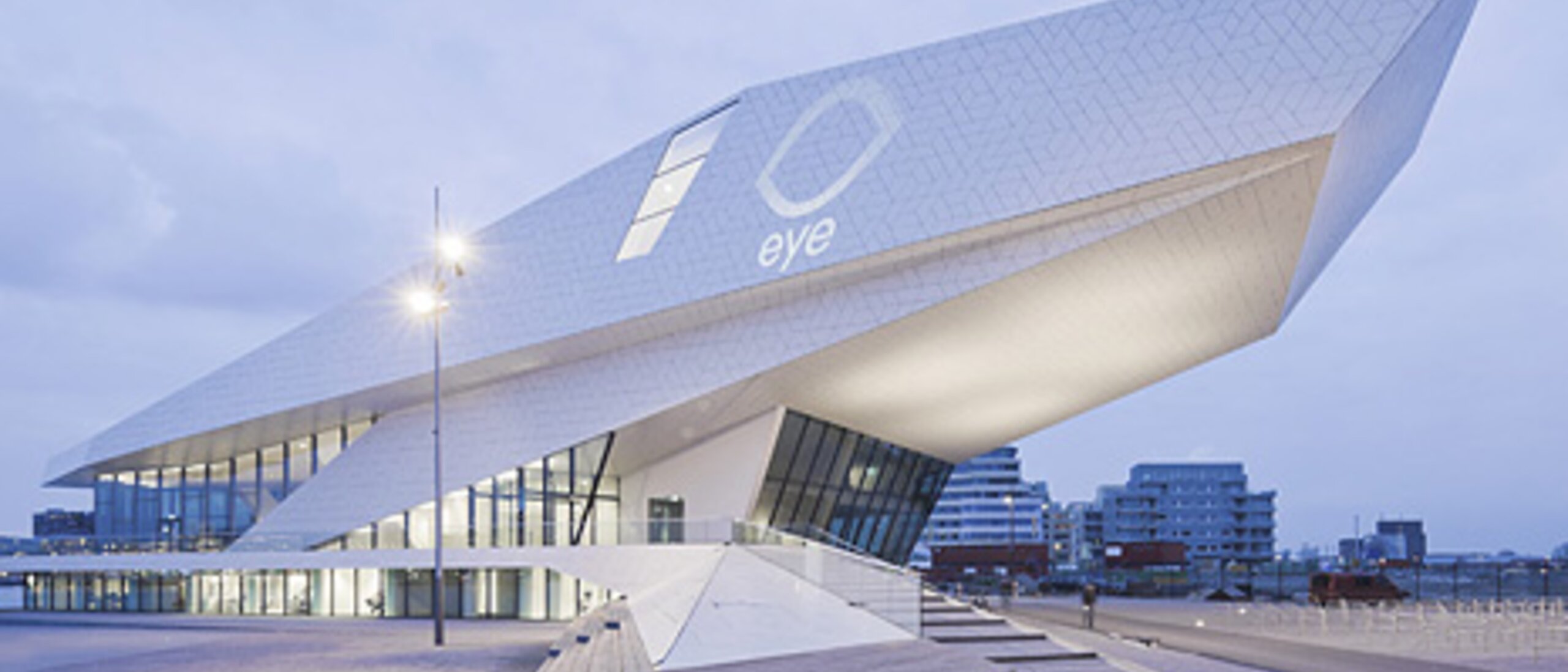 Tot nu toe was de twintig verdiepingen tellende Overhoeks Toren op het industrieterrein van het voormalige Shell-terrein het enige architectonisch opvallende kenmerk aan de noordoever van het Ij. Met EYE is een mijlpaal voor Amsterdam toegevoegd. Hoekig, stralend wit en helder verlicht, zendt het een zichtbaar signaal uit. Het spectaculaire Amsterdams Filmmuseum is ontworpen door het Oostenrijkse architectenbureau Delugan Meissl. Het sculpturale, futuristische gebouw ontsnapt aan een snelle opname, zowel van binnen als van buiten. Net als de opeenvolging van beelden in een film, openen zich steeds weer nieuwe perspectieven. Afhankelijk van de plaats waar de toeschouwer zich bevindt, verandert de ruimtelijke verschijningsvorm van het EYE Museum. Het gebouw lijkt soms slanker, soms hoger, soms gedrongener, soms meer open, soms meer gesloten. De dynamiek van het gebouw wordt binnen voortgezet met de Range 120 deurkruk van HEWI. De samen met Delugan Meissl ontwikkelde armaturen grijpen terug op de vormentaal van de architectuur. Het gevouwen silhouet van de deurklink creëert dynamische lijnen en vloeiende ruimtelijke relaties