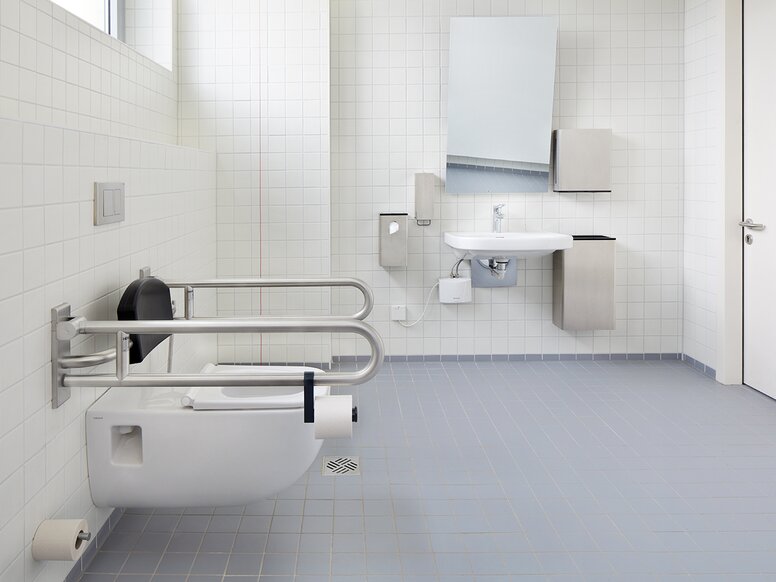 "Over het algemeen waren we ook onder de indruk van het concept van universeel design, dat rekening houdt met de behoeften van alle gebruikers en een hoge prioriteit heeft bij HEWI," legt de architect uit. De combinatie van rugleuning en opklapbare steun biedt bijvoorbeeld extra veiligheid en is precies afgestemd op de behoeften van mensen met motorische beperkingen.