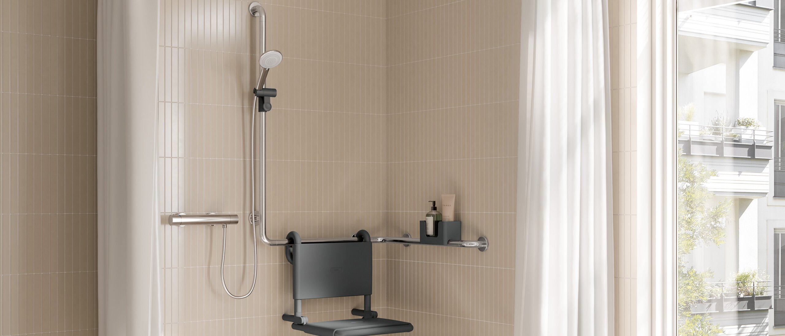 Ważną rolę odgrywają nie tylko elementy stałej zabudowy, lecz również akcesoria. Dzieje się tak, ponieważ pacjenci z reumatyzmem, cierpią nie tylko z powodu wysokiej wilgotności, lecz są również szczególnie wrażliwi na kontakt z zimnymi przedmiotami. Wrażliwość na zimno stanowi poważne wyzwanie, ponieważ może powodować nie tylko dyskomfort, ale także dodatkowy ból. Osoby dotknięte tą wrażliwością często niepewnie czują się w pozycji stojącej i muszą polegać na elementach zapewniajacych wsparcie , takich jak składane uchwyty ścienne, uchwyty lub poręcze prysznicowe. Dlatego zastosowanie akcesoriów o ciepłej haptyce zapewnia nie tylko fizyczny, ale także emocjonalny komfort dla tych osób.